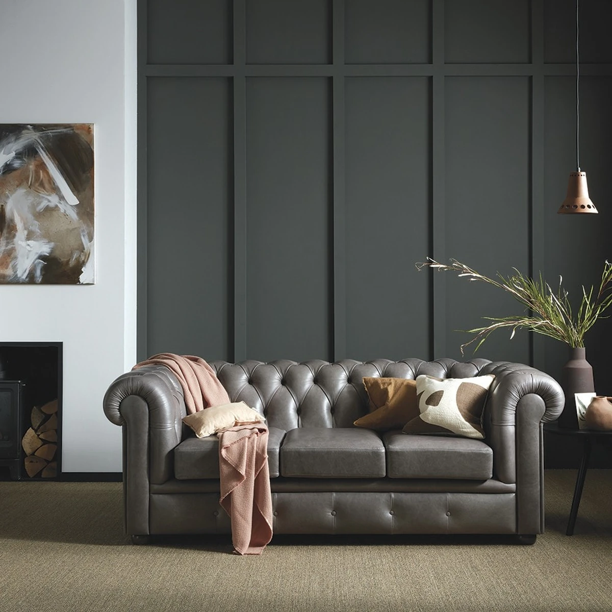 Un’interpretazione più sobria del classico Chesterfield, perfetta per spazi raffinati e misurati. Lo Winchester si presenta leggermente più alto, con braccioli compatti e ordinati, e una singola fila di bottoni che corre lungo il fronte.
